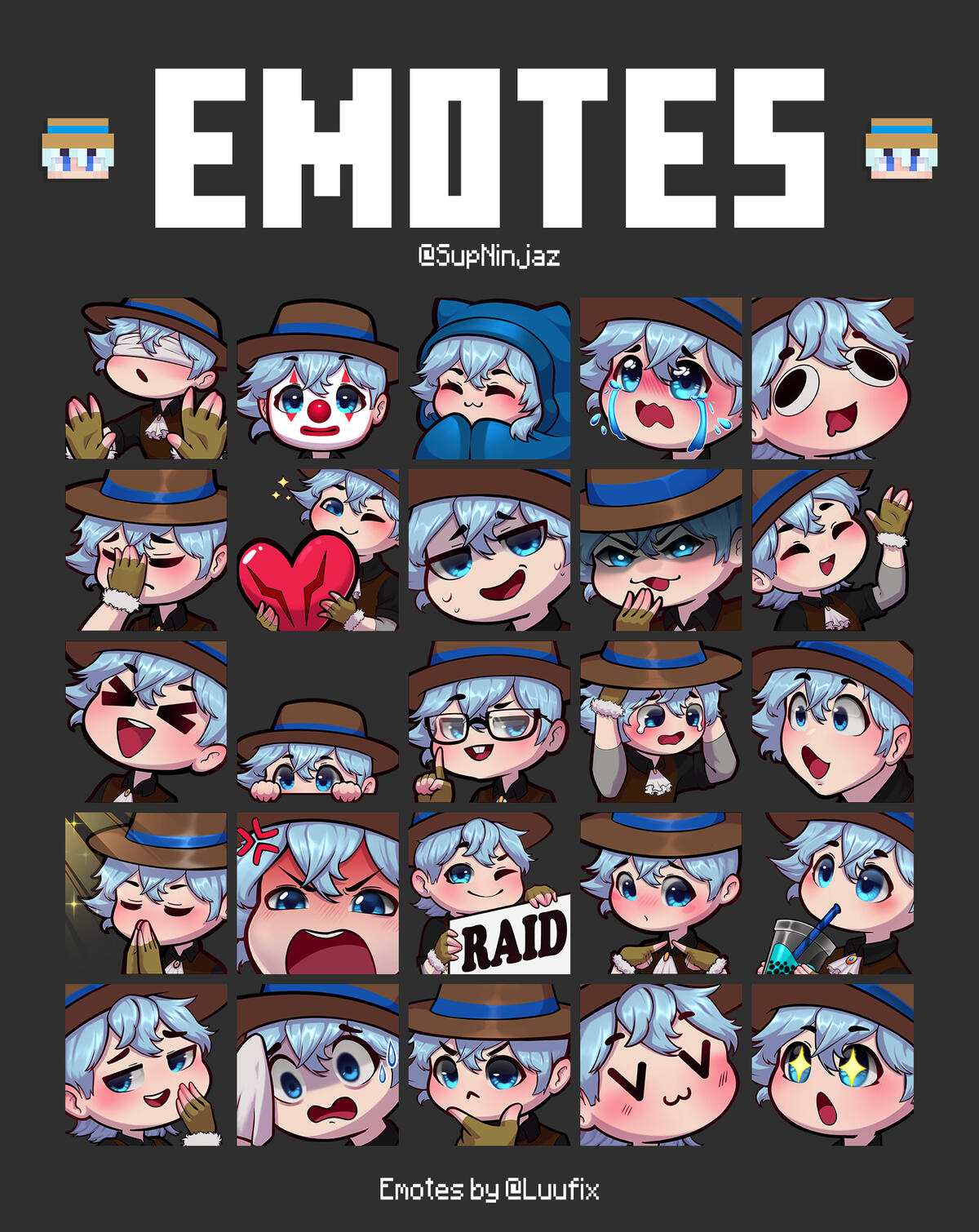 The emotes for my Twitch channel were created by Luufix, a Brazilian artist. I highly recommend his work! You can learn more about it on his Carrd.